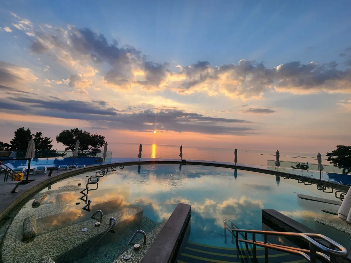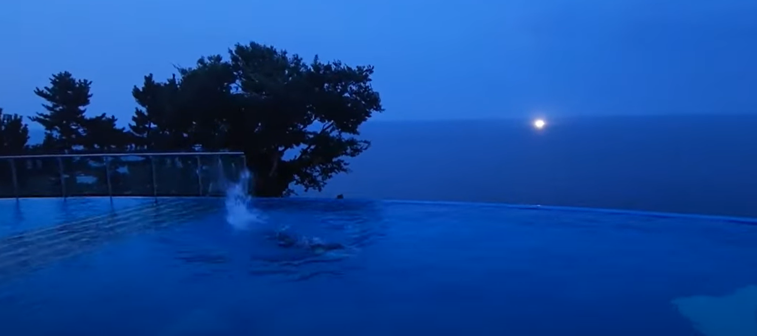 수영장 뷰가 좋아서 해질녁에 수영하면 좋다!