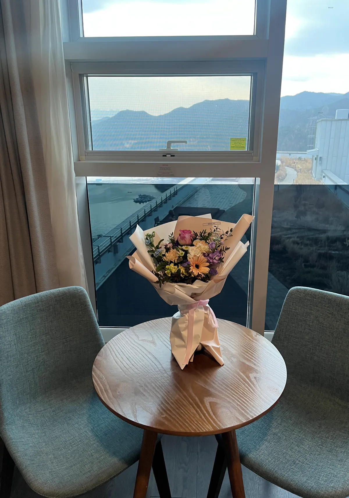 꽃은 내돈내산. 이렇게 놀러 갈 때 방안에 꽃을 두면 향기도 좋고 기분은 두 배가 좋아져서 종종 이렇게 꽃을 놓는다!ㅎ