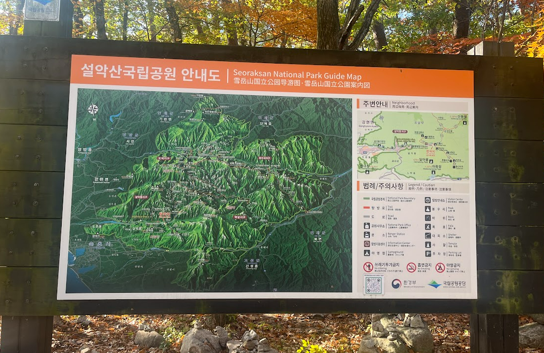 여기가 설악산주차장입구이고 저기를 지나서 케이블카 타는곳 신흥사가는곳 대청봉가는곳