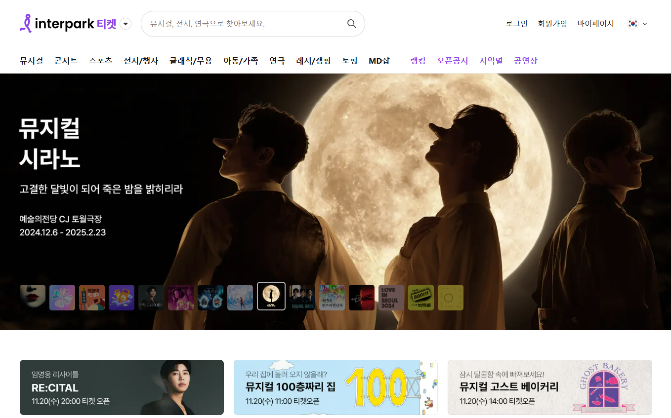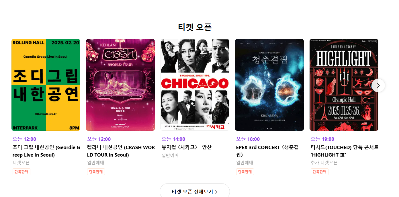 인기있는 공연들은 예매시간 땡했을때 금세 마감된다