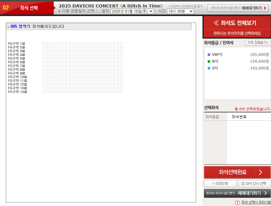 모든구역이 대기예매가능한게 아니라 구역을 하나하나 선택해서 시간과 좌석을 선택해야