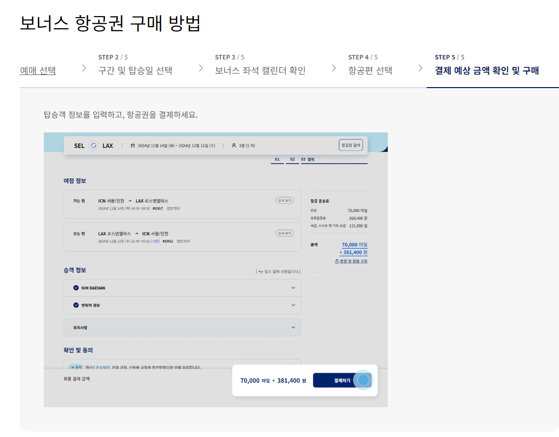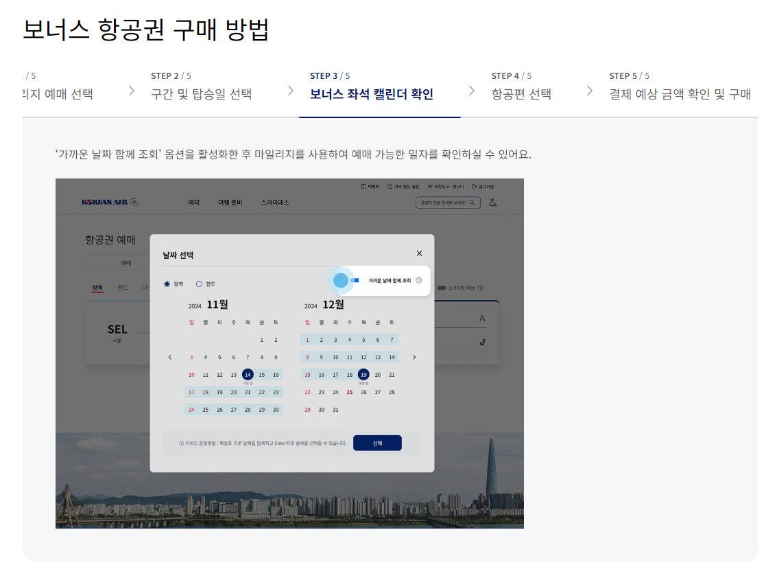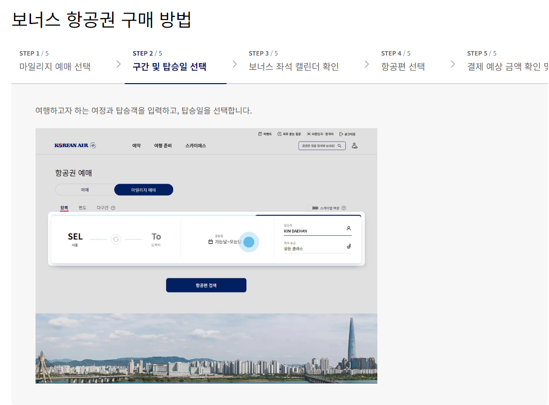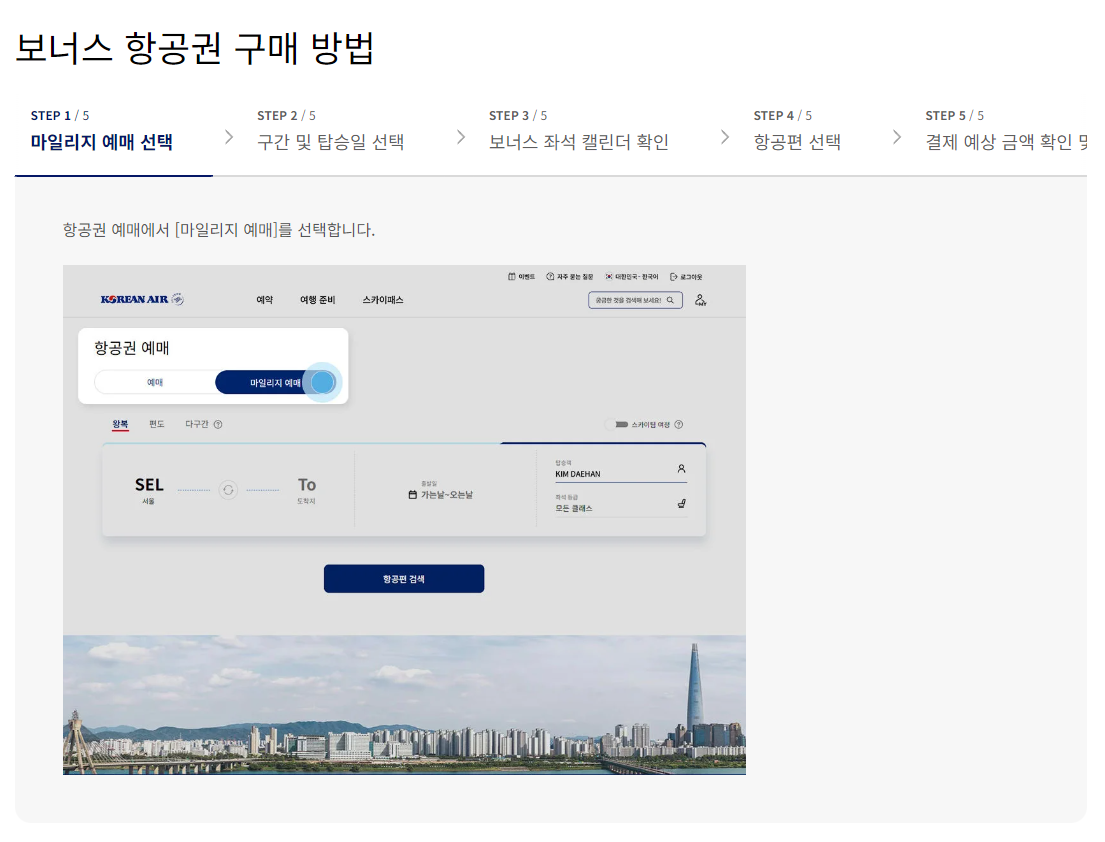 대한항공 마일리지 항공권 예매하기
