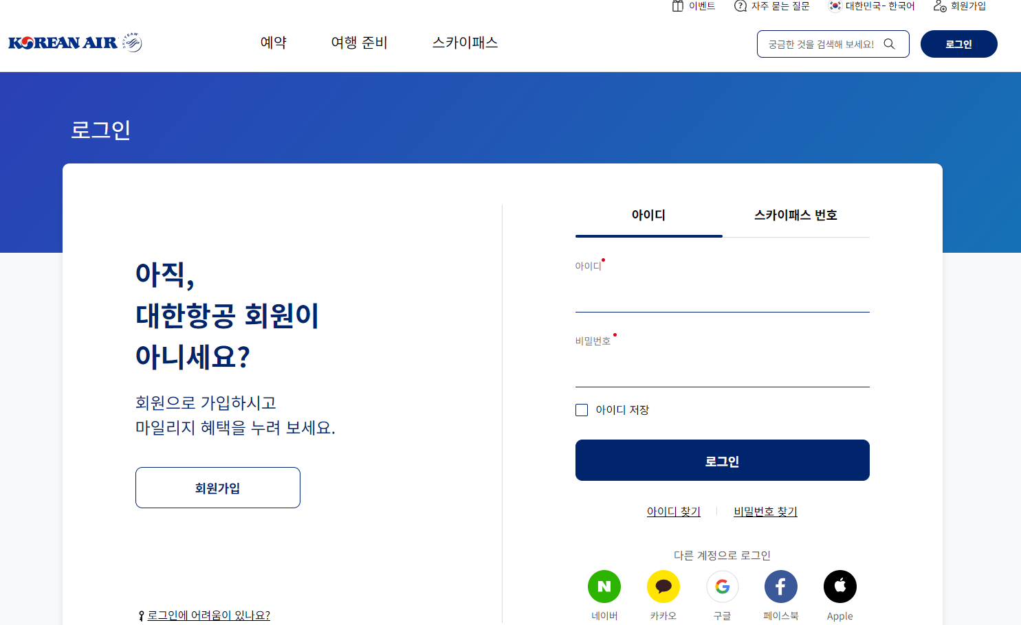 대한항공 사이트 접속