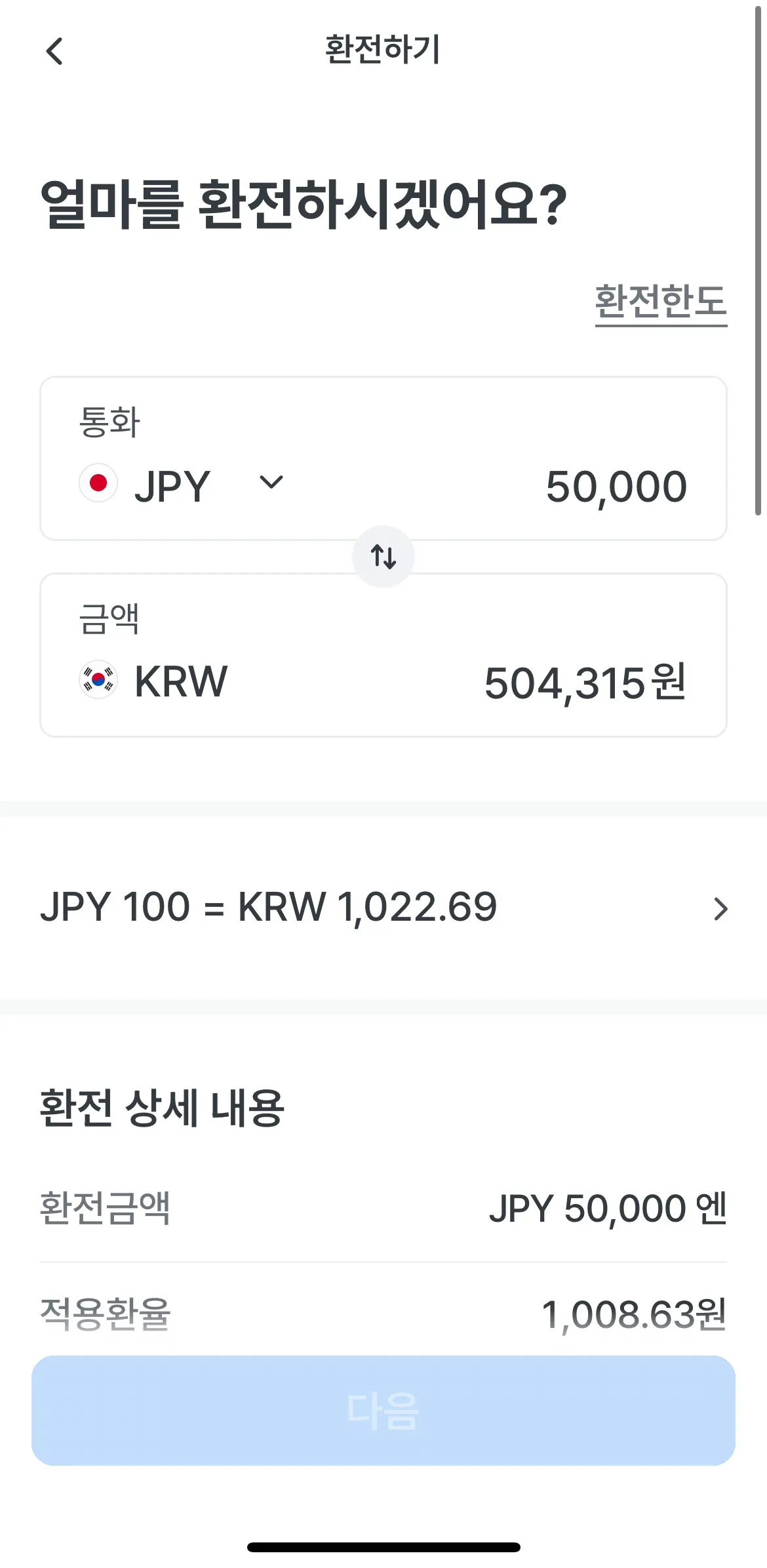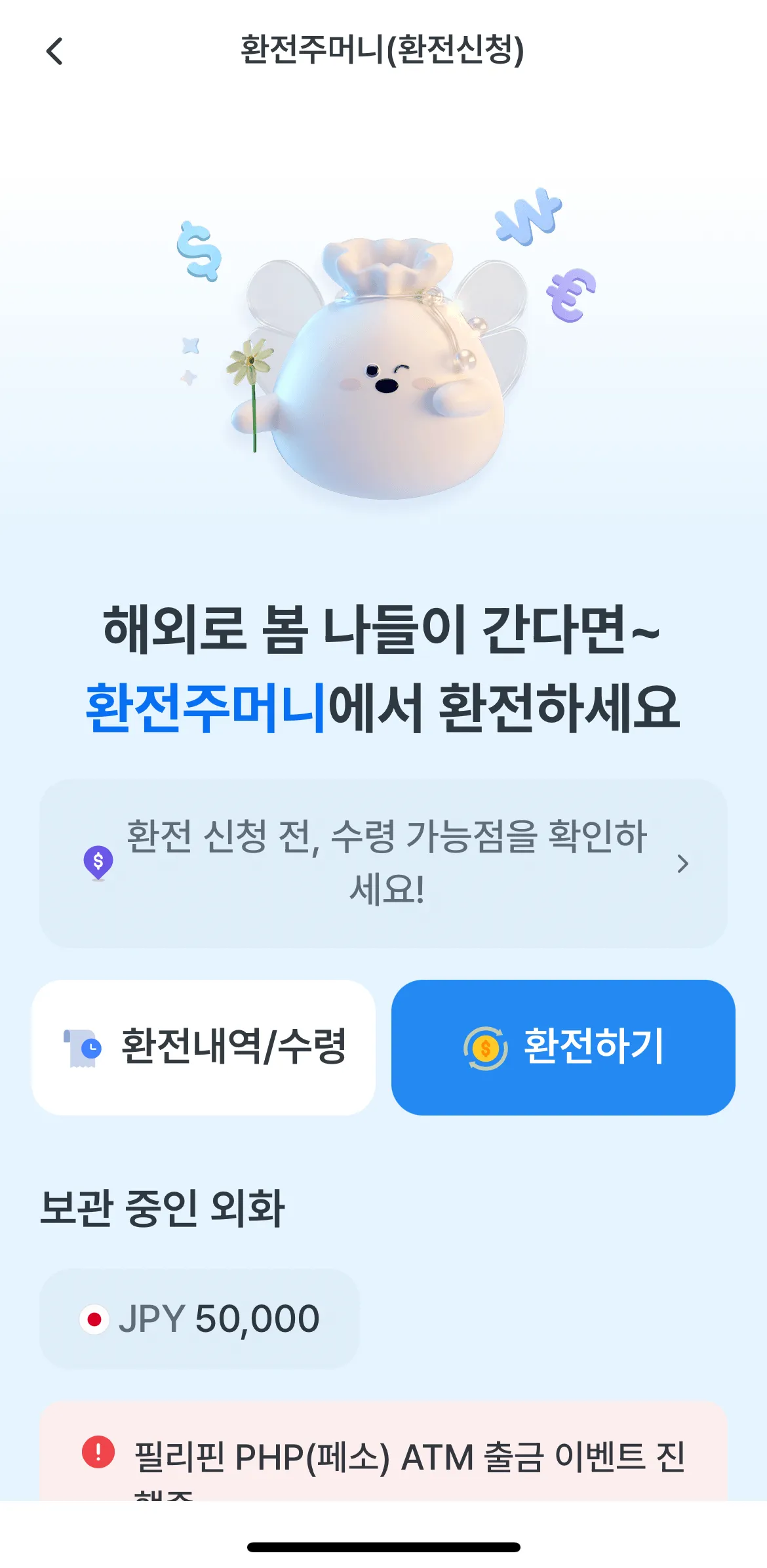 -> 원화는 통화 선택 후 금액 입력 -> 수령점 및 지정일에 수령하기!