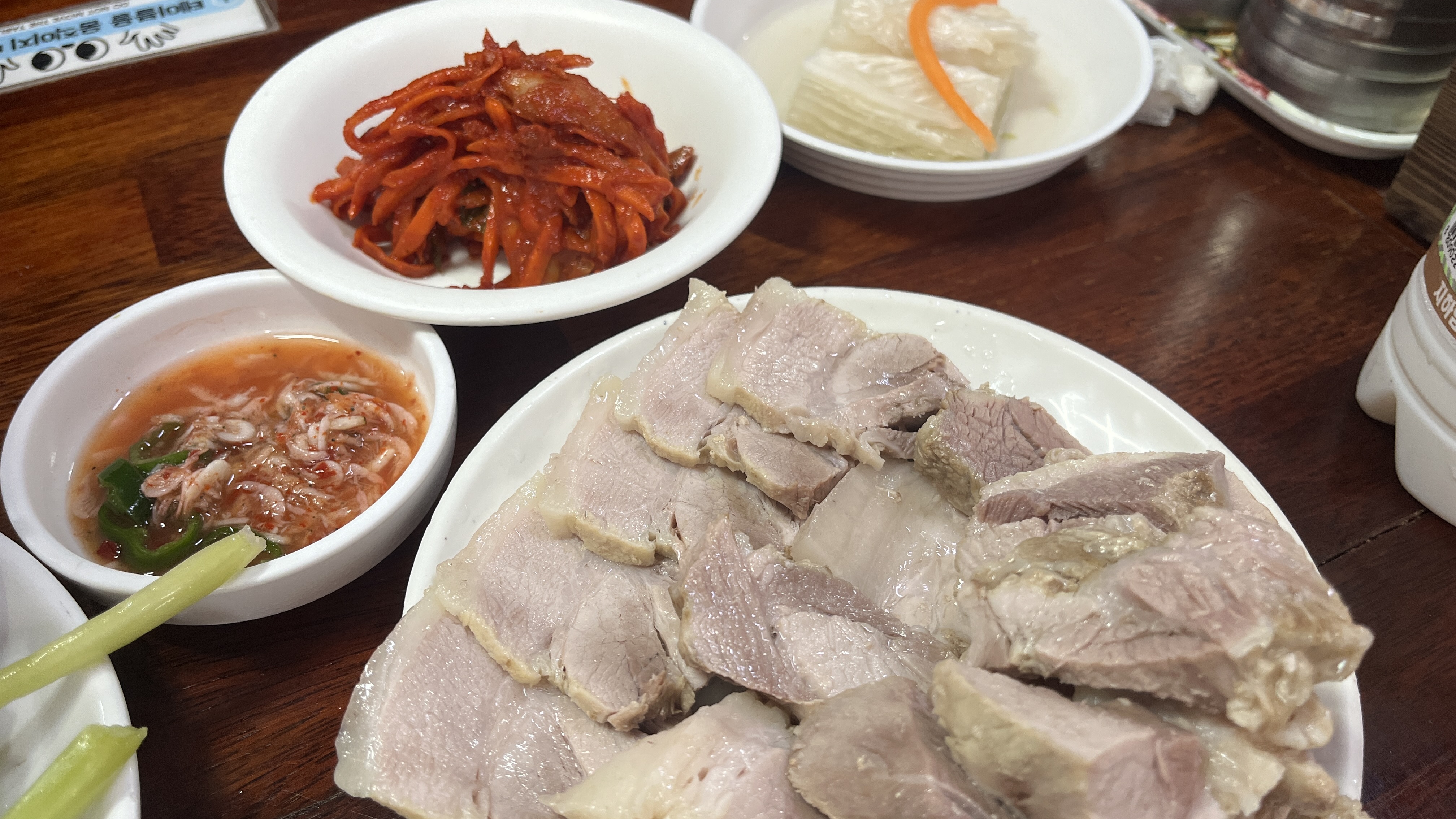 그래도 여기까지 왔으니 먹자하고 주문한 편육 소.