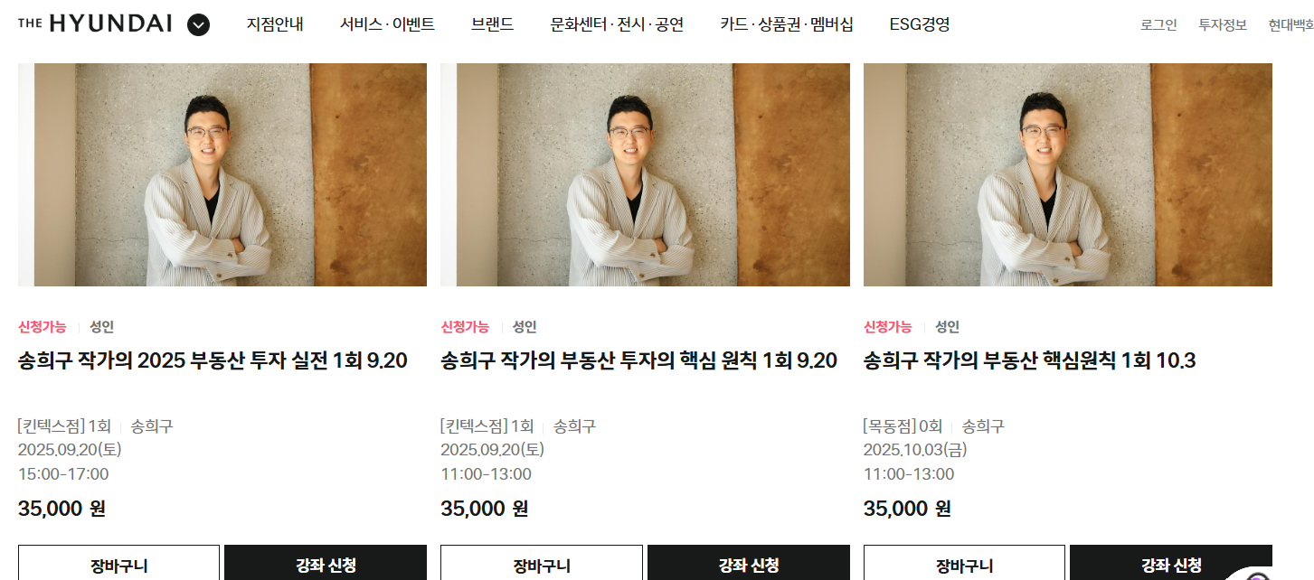 부동산강의 작가 송희구의 부동산 투자의 핵심원칙 현대백화점문화센터 강의듣기