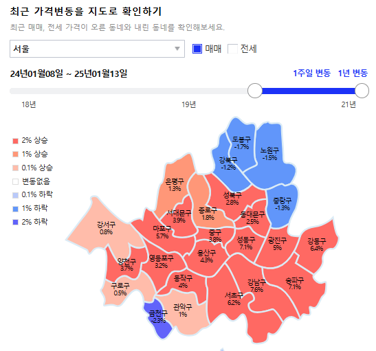 부동산 서울25개구 가격변동추이 부동산가격흐름 파악하기 25.1월 현재