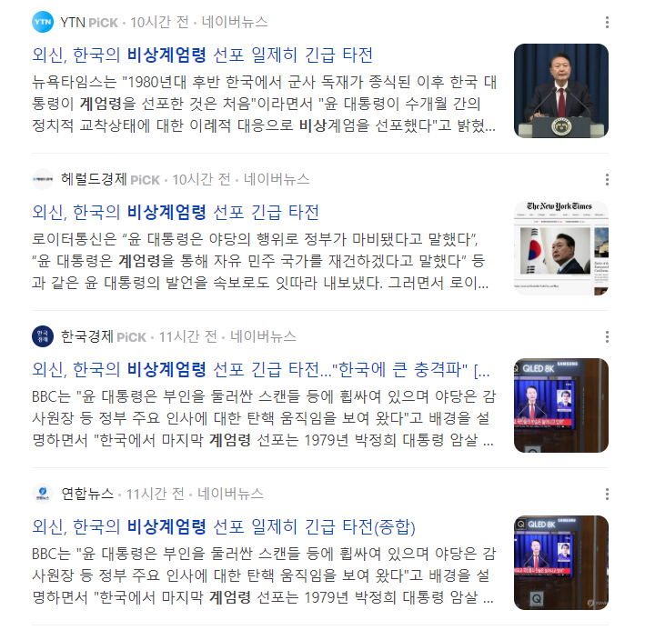 무슨 일인가 했더니 '윤석렬대통령 45년 만에 비상계엄령 선포'