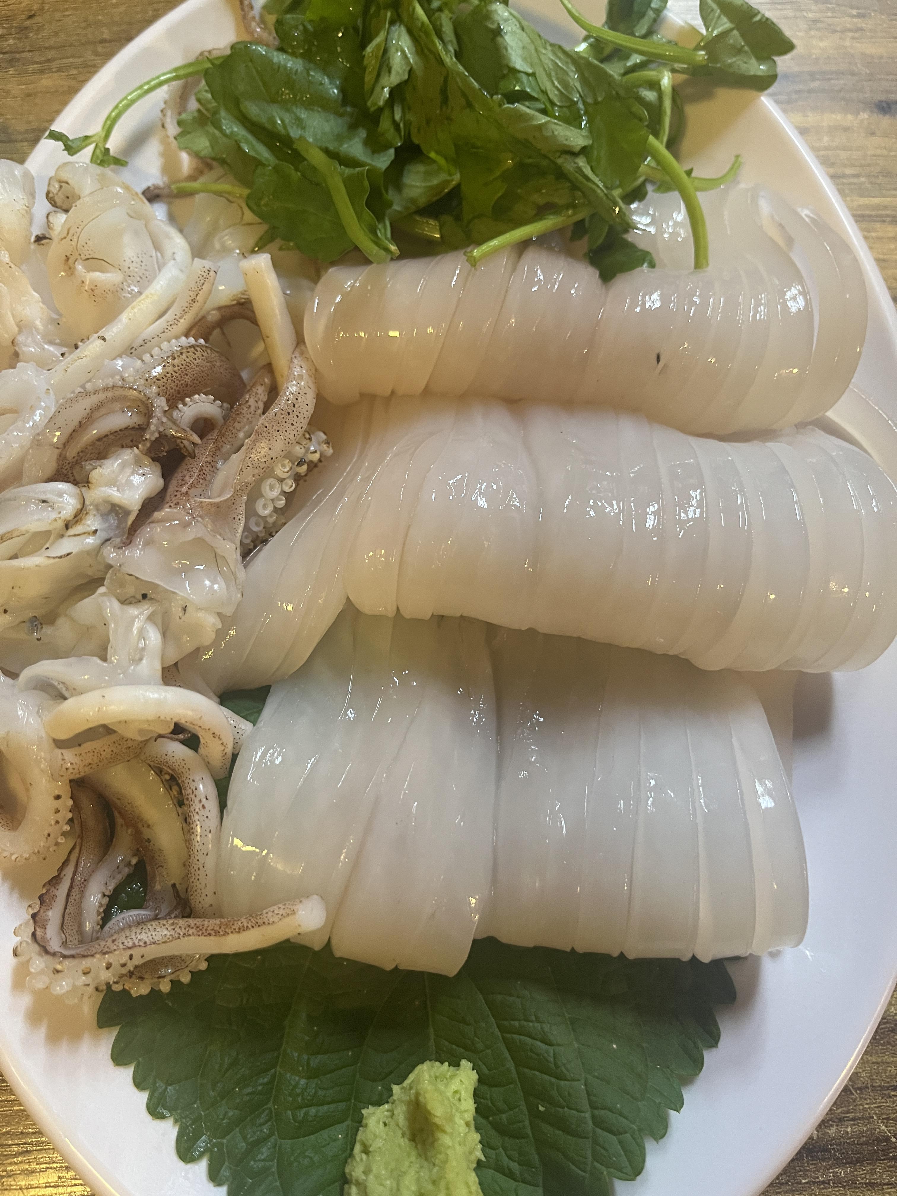 지금철인 한치회도 야들야들! 와사비주는 센스!