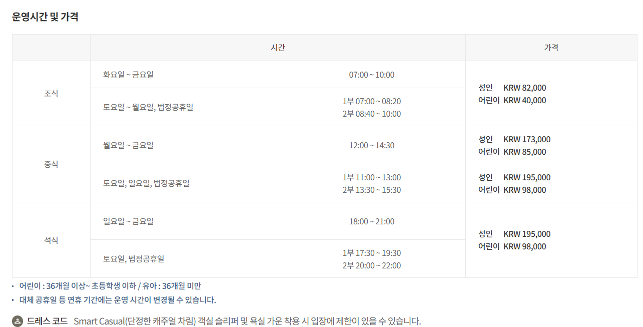 저렇게 1부 2부로 나눠져 있지만 주말엔 금세 예약 마감인 듯..