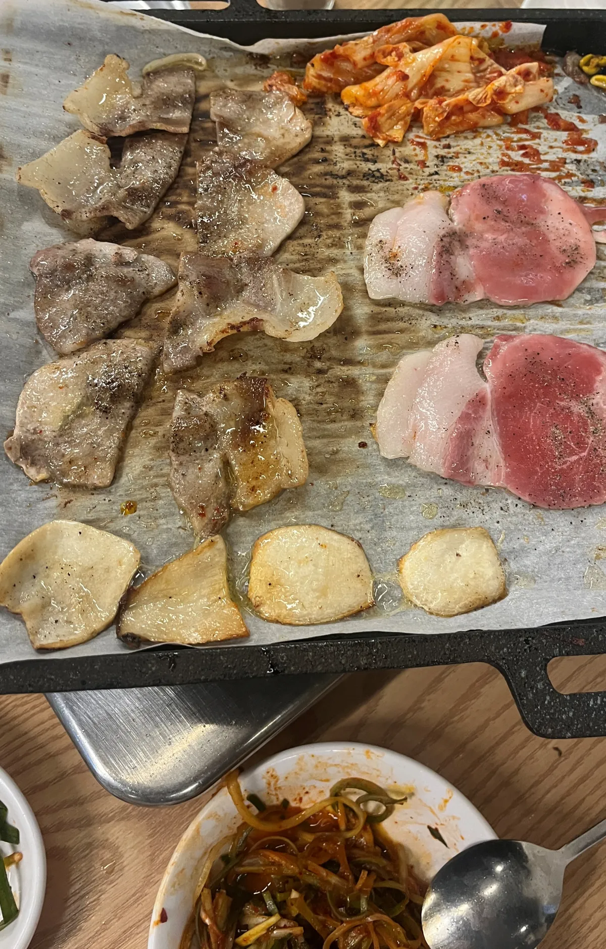 부추, 콩나물, 마늘, 버섯, 김치를 같이 구워서 싱싱한 상추에 한쌈해서 먹으면 완전 꿀맛!!