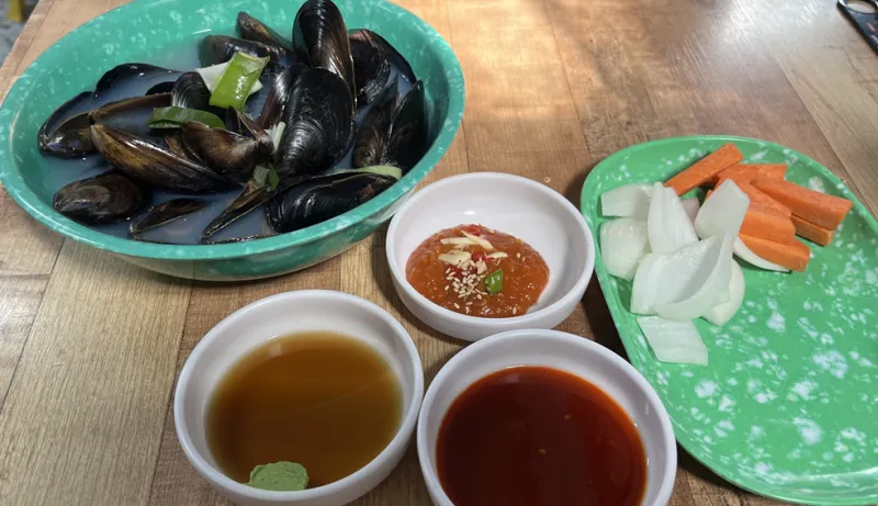 기분이 영 별로... 하고 있는데.. 더운 날씨임에도 홍합탕 국물을 마시곤.. 싹 풀렸네...ㅎㅎㅎㅎ