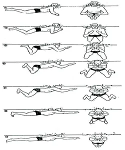 다리동작에서 발바닥이 물살을 가르는 느낌이 없다면 평영의 자세는 엉망진창이 된다