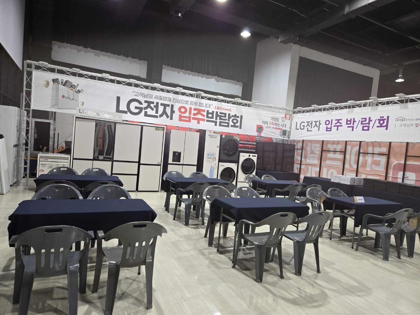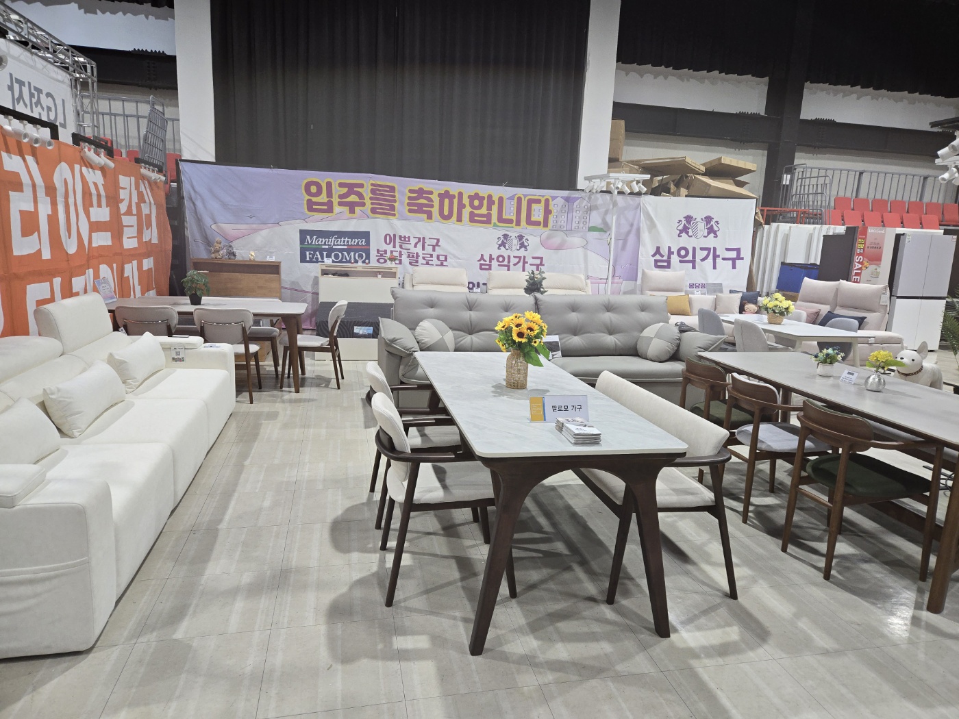 대학교 강당같은 큰장소를 빌려서 가구, 가전, 줄눈, 탄성코트, 중문, 입주청소, 이사짐, 인터넷 등등
