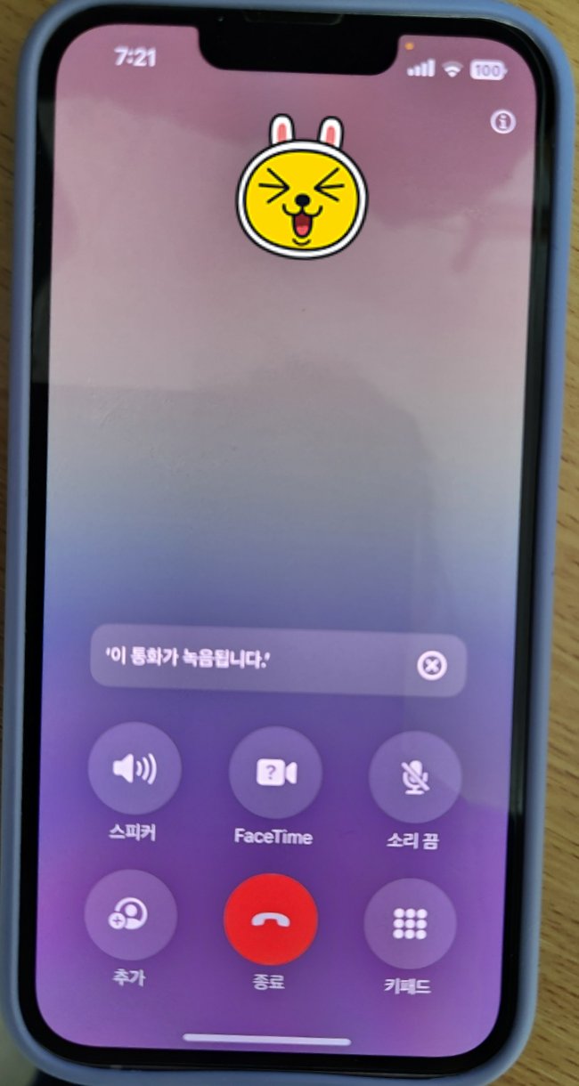 2. 통화하면서 아이콘을 누르면 '이통화가 녹음됩니다' 음성과 함께 시작된다