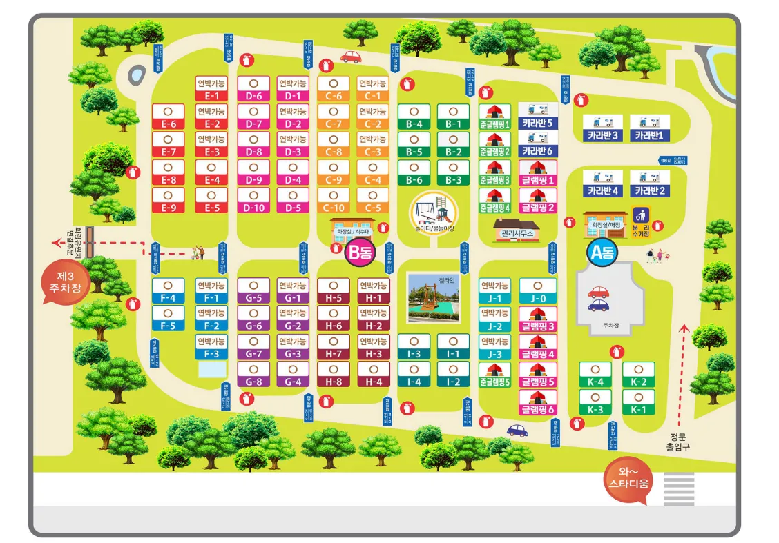 그림과 같이 오토캠핑장, 카라반, 글램핑, 준글램핑