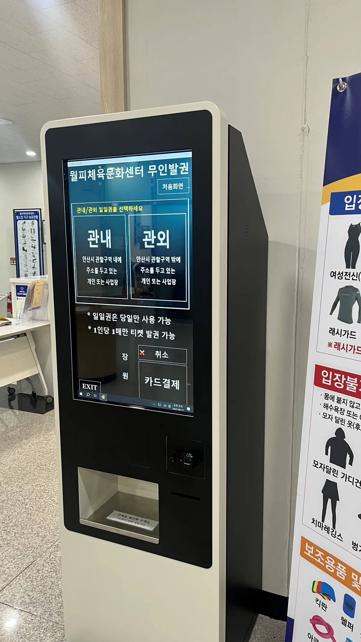 입구 들어가면 안내데스크가 있긴 하지만 1일권 티켓구매는 키오스크에서...ㅎ
