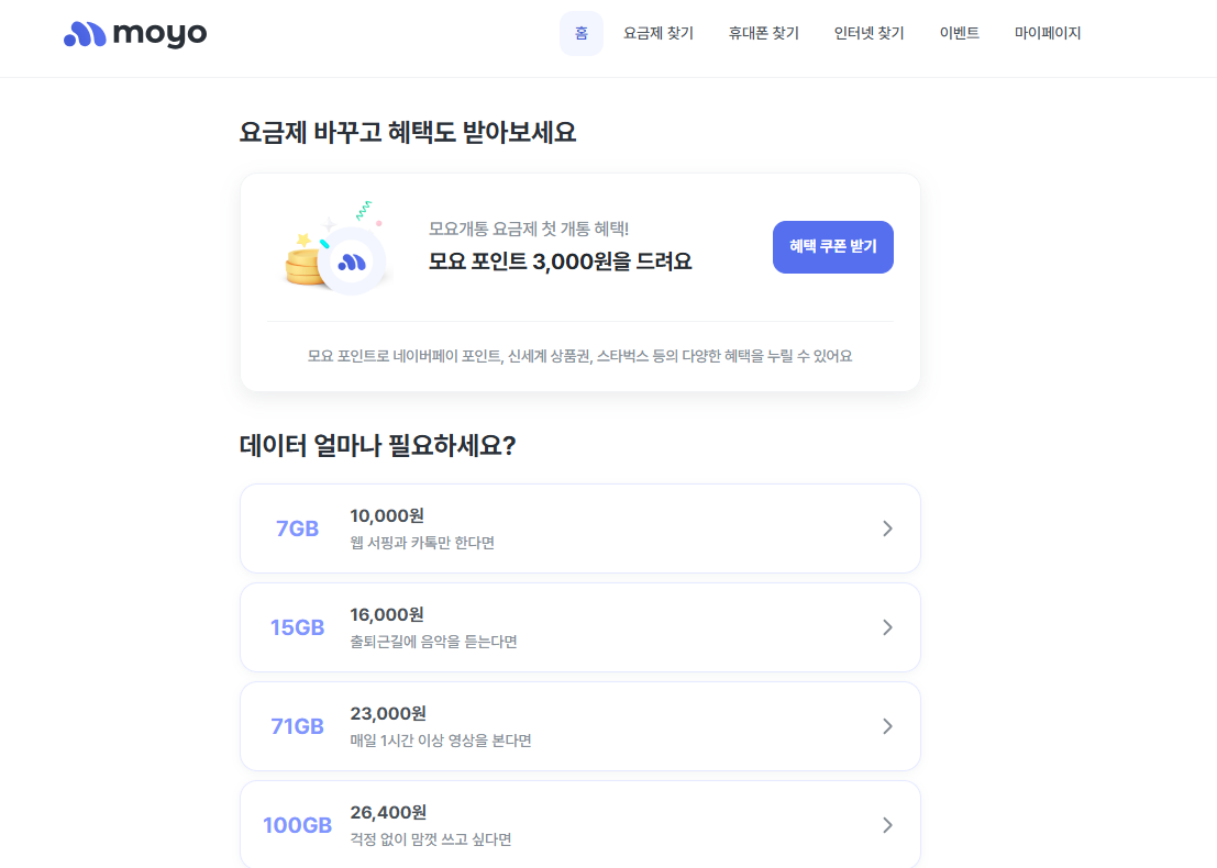 알뜰폰 알뜰요금제비교 모요 moyo 모두의요금제