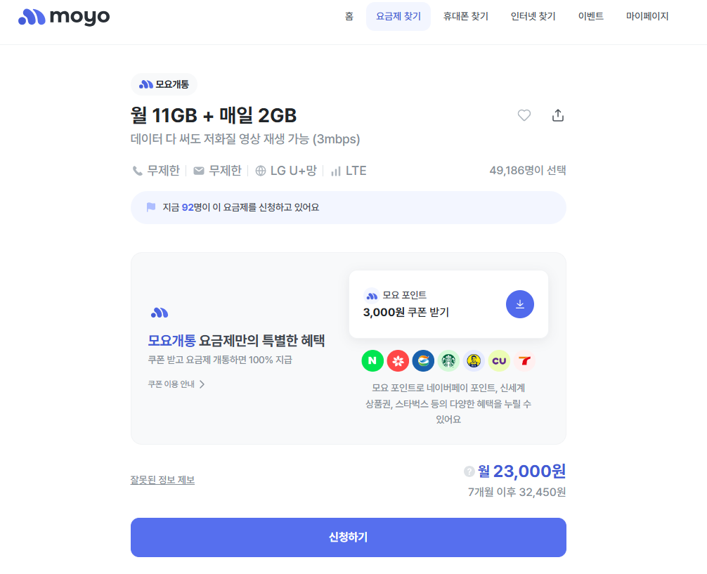 알뜰폰 알뜰요금제비교 모요 moyo 모두의요금제