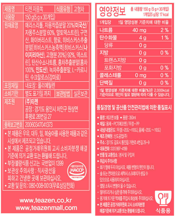 티젠 자몽쏙 성분