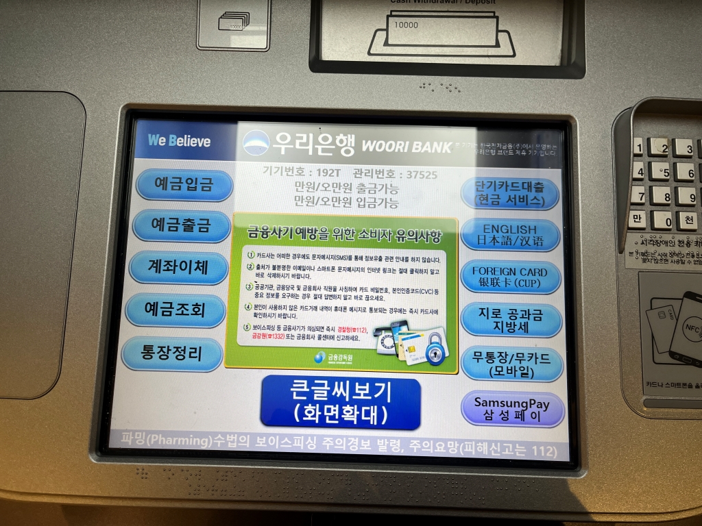가끔 현금이 필요할때 대부분이 계좌이체를 하긴하지만 현금만 필요할때가 간혹있는데