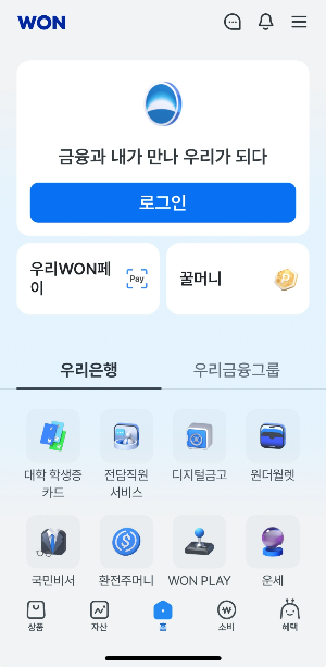 당연히 우리은행 WON뱅킹은 설치가 되어있어야된다