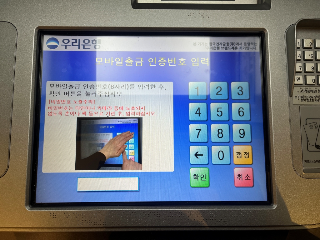 핸드폰의 은행어플을 이용해서 출금해야되니 당