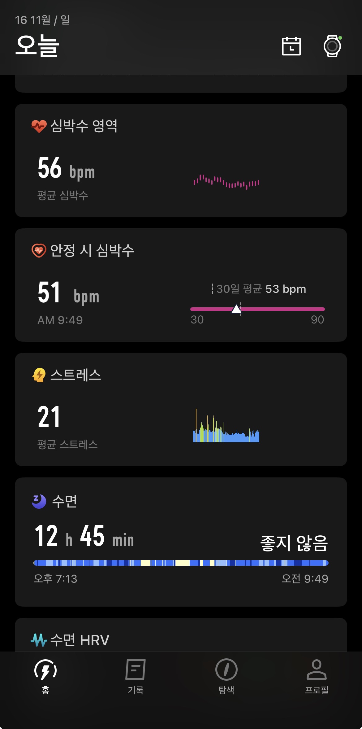 수면은... 어떤걸기준인지 모르겠지만 분명 깨어있었고 움직였는데 수면으로 인식.. 이건 더 두고봐야겠다