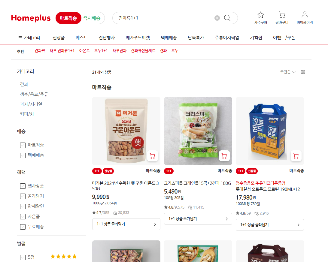 장보기 홈플러스 인터넷장보기 앱장보기 물가안정프로젝트 시그니처심플러스 견과류1+1 무료배송4만원이상