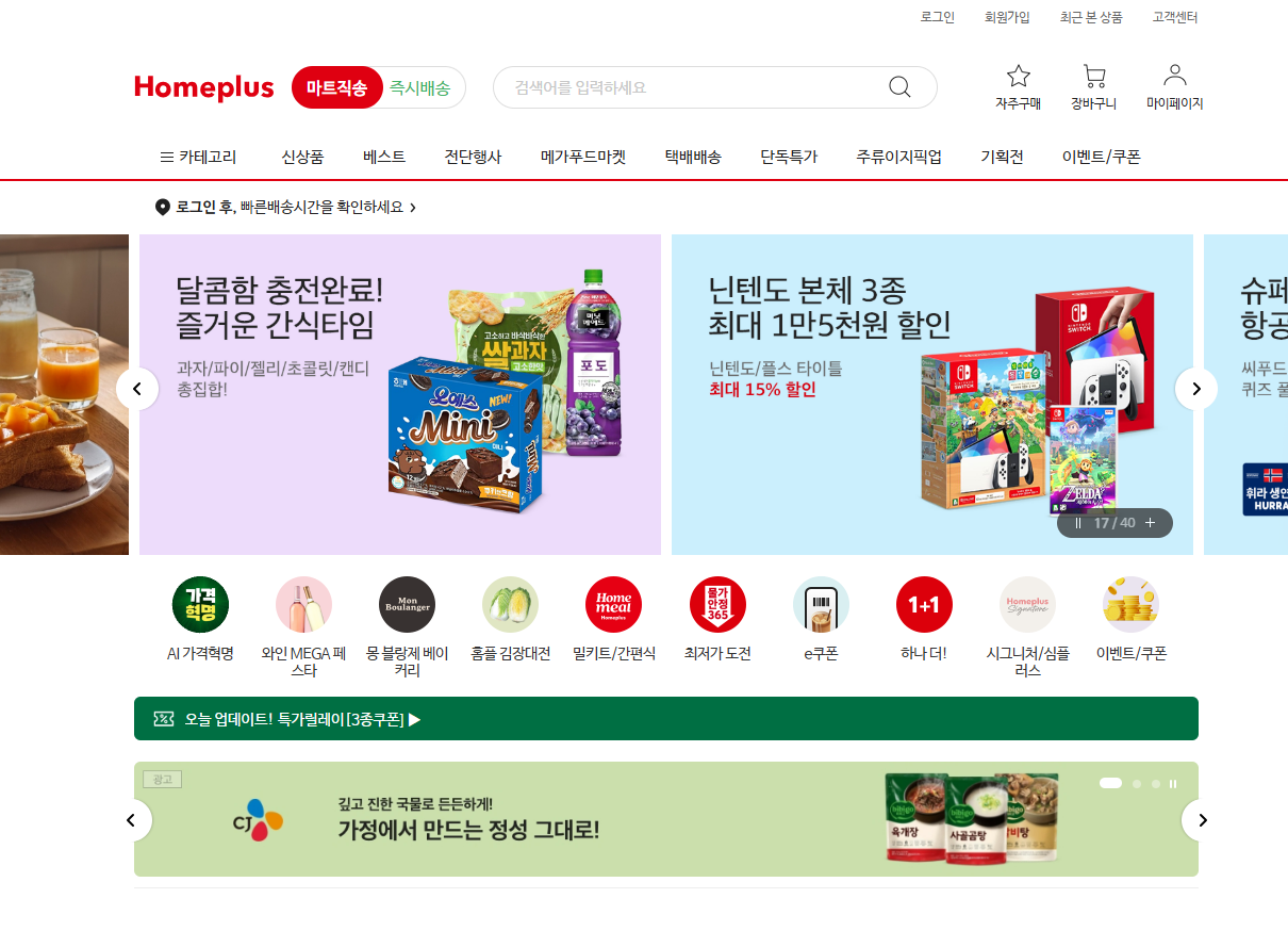홈플러스 뿐만아니라 배민,쿠팡, 네이버 등등 인터넷으로 장보기가 시장가서 장보는것보다 편해진 요즘이다