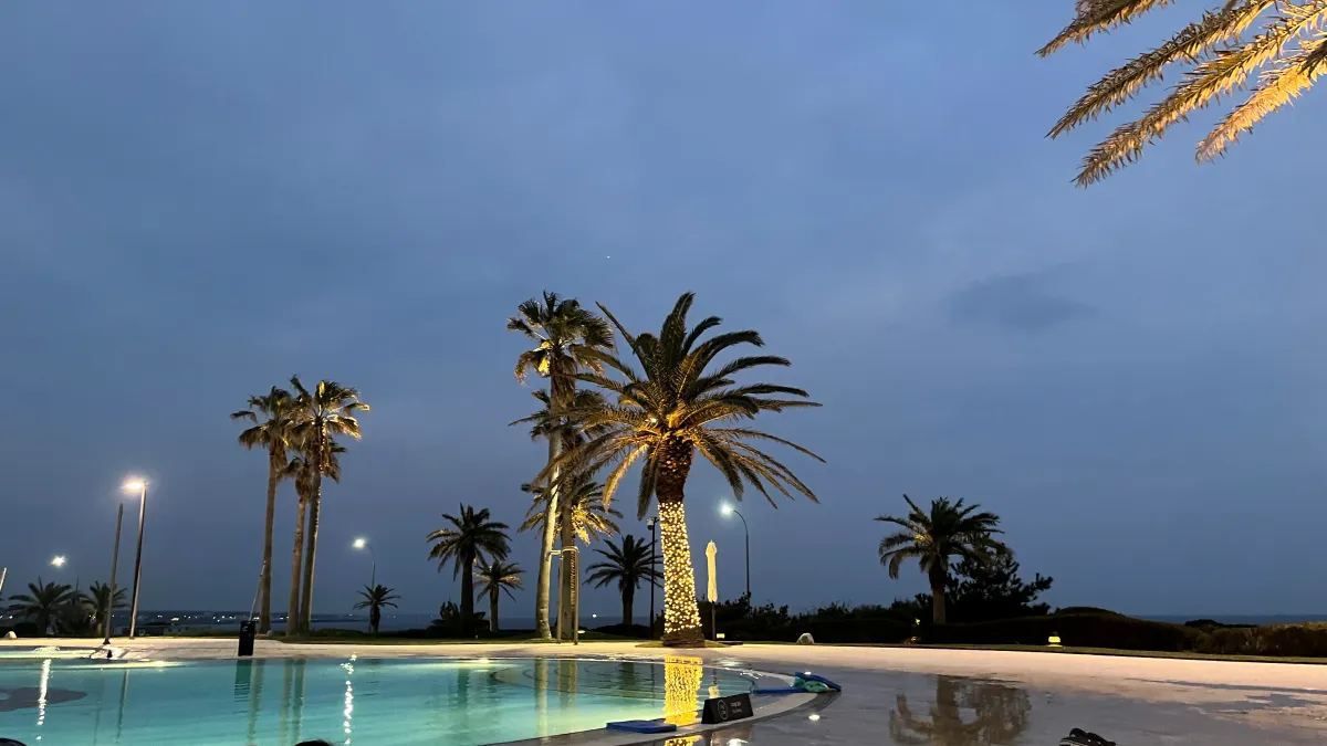 대신 파르나스같이 바다와 수평선이 같은 위치가 아니고 가까이 바다가 있지 않아서 사실 밤수영에서
